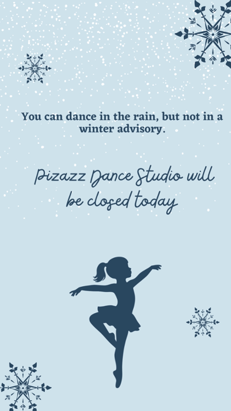 Due to the ice forecast this afternoon Pizazz Dance Studio will be closed